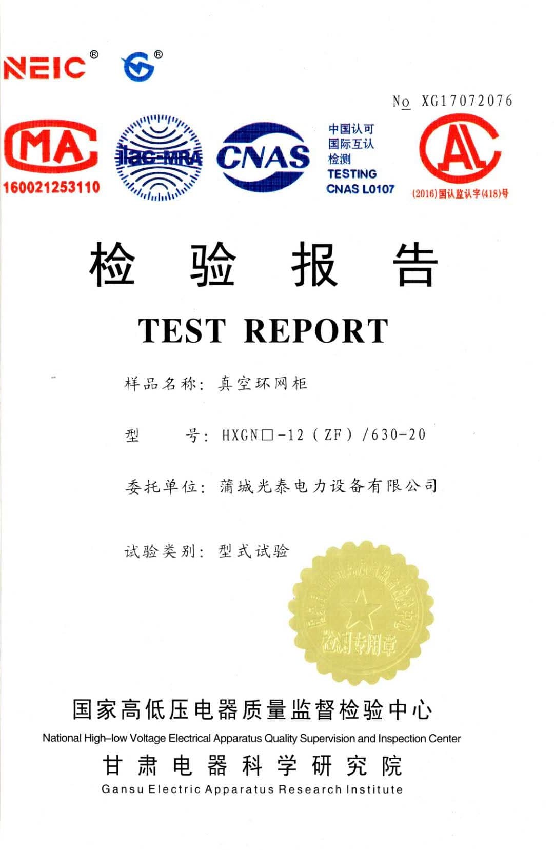 真空环网柜 检验报告